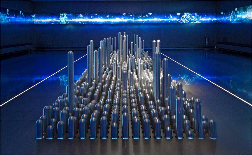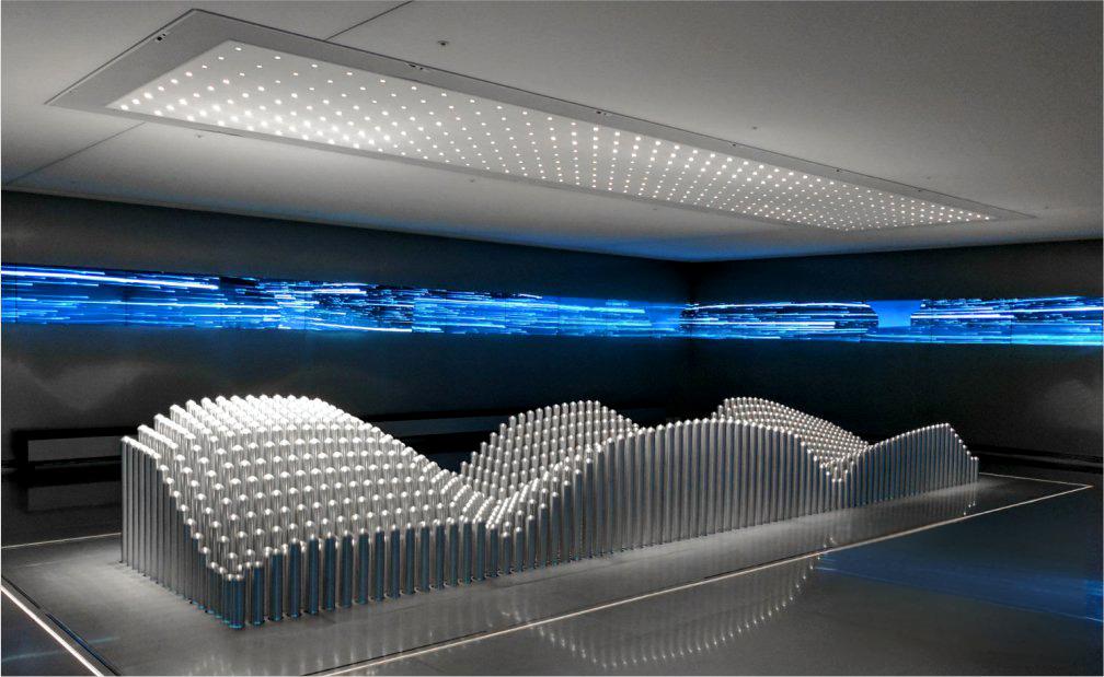 多媒體裝置藝術,是指藝術家在特定的時空環境里,將人類日常生活中的已消費或未消費過的物質文化實體、進行藝術性地有效選擇、利用、改造、組合,以令其演繹出新的展示個體或群體豐富的精神文化意蘊的藝術形態。簡單地講,裝置藝術,就是“場地+材料+情感”的綜合展示藝術。其中結合燈光藝術、機械裝置、中控智能、互動程序、影像藝術、聲音藝術等多方面的體念結合。